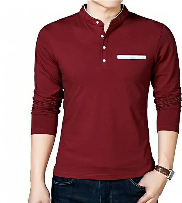 BODYTALK FASHION men's trendy mndarin collar and bond pocket cotton t-shirt